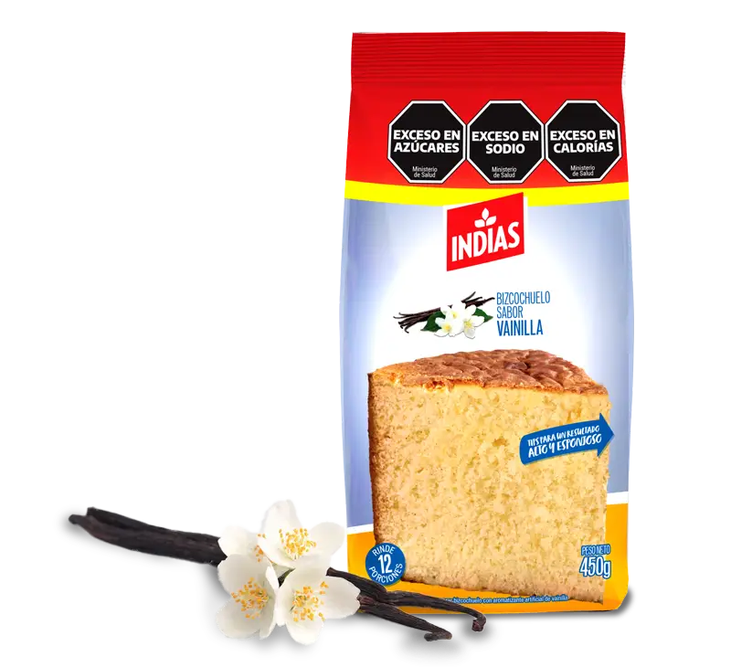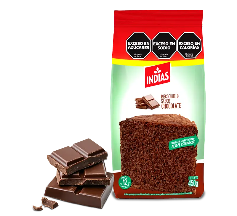 Ingredientes: Azúcar, harina de trigo, almidón de maíz, cacao amargo, sal, esencia artificial de vainilla (ARO), aceite vegetal, mono y diglicéridos destilados (EMU) I.N.S. 477, bicarbonato de sodio (RAI) I.N.S. 500 ii, fosfato de aluminio y sodio (RAI) I.N.S. 541 j.